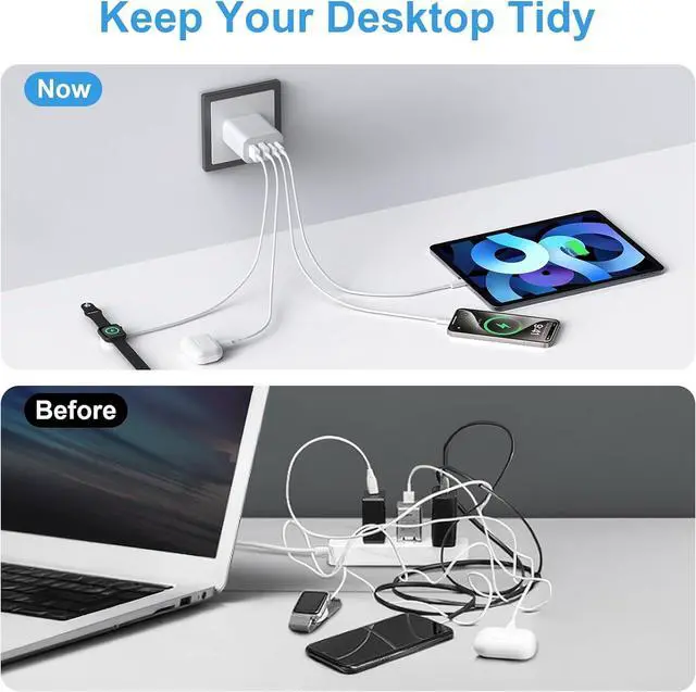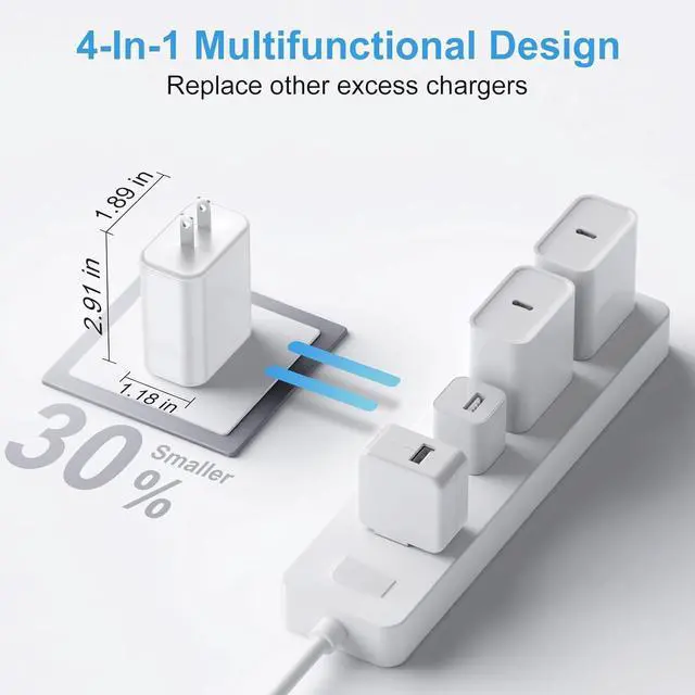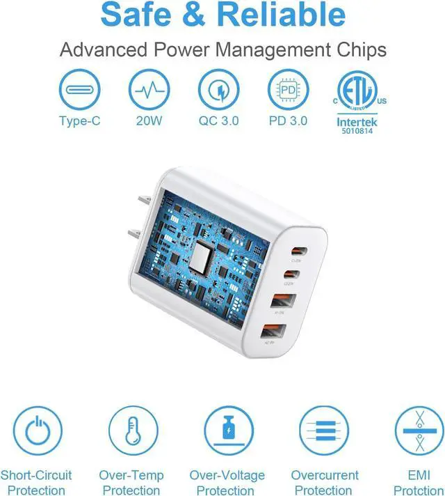 Multiport Brick USB C Wall Charger Type C charger fast charging With provides over-current, over-voltage, over-heat and short-circuit protection for your devices to ensure safer charging. This PD Wall Charger can intelligently identify your devices and optimizes the fastest and most efficient output current. Safe charging and no damage to your devices.