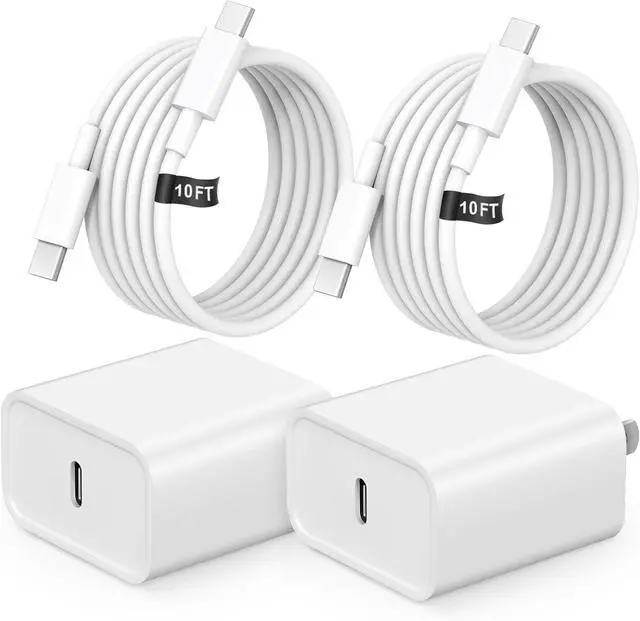 What You Get2 x 20W USB C wall chargers + 2 x 10ft USB C to C fast charging cables. Perfect for home, office, or travel use.