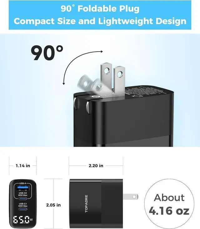 What You GetTOPADRE 65W Wall Charger x1, User Manual x1, Industry-Leading 2-Year TOPADRE Care, and Lifetime Technical Support. If you have any questions, please feel free to consult. We will help you solve the problem within 24 hours