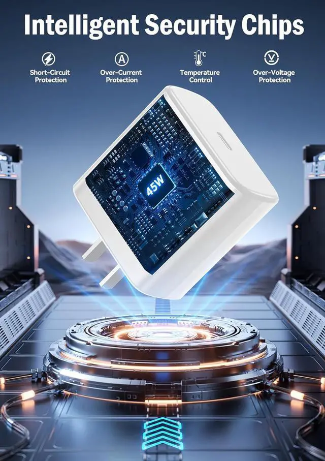 Multi-Protection Safety System: This 47 watt ultra fast charger type C is equipped with advanced safety features such as overcurrent, overvoltage, overtemperature, and short circuit protection. This charger safeguards your valuable devices from damage while ensuring stable, safe charging every time