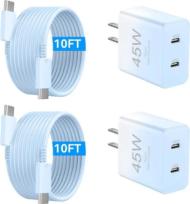 What You Get: 2 x 45W Dual Ports USB C Phone 17 Fast Charger Block, 2 x 10ft USB C to C charging cable. If you have any questions, please contact us, we promise to solve your problems within 24 Hours