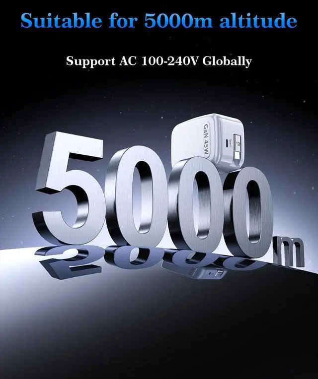 Travel-Optimized Design The foldable prongs and 3 adjustable retractable cables (75cm/100cm/150cm) ensure compact portability, fitting easily into bags or pockets. Rated for 5, 000m altitude use, it withstands extreme environments like high-altitude hikes or international flights.