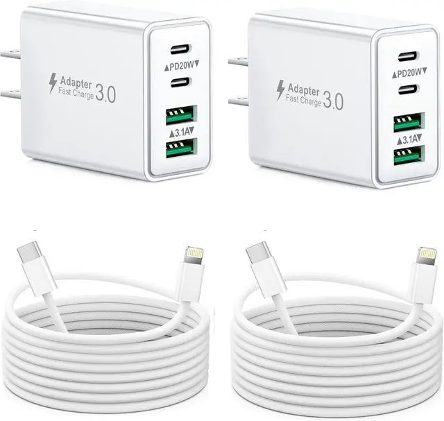 2-Pack 40W USB C Charger Block: 4-Port Charger Block design with dual USB-C port and dual USB-A portcharge 4 devices at the same time to minimize waiting time, best replacement for your original charging Adapter.
