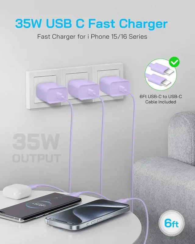 Ultimate Convenience: Get everything you need in one box. This bundle includes the 35W Charger Block and a durable, 6-foot USB C to C Cable. The included 6FT USB C to C Cable is lab-tested for a long bend lifespan, offering both reliability and extended reach for comfortable use.