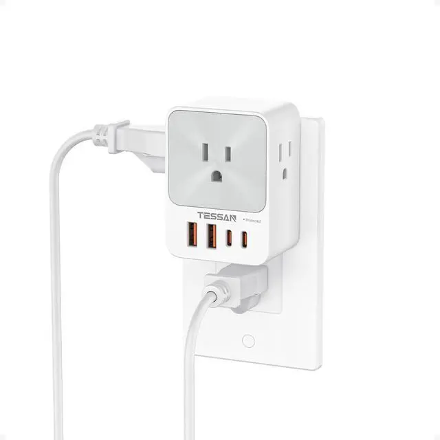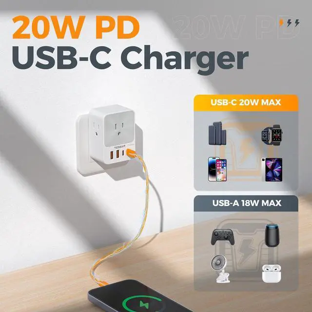 Compact and Portable: TESSAN USB outlet measures 2.36 × 3.15 × 1.54 inches, and weighs 5.21 ounces, has a compact size and won' t block the use of below sockets when plugged in; USB wall plug can fit in tight spaces and is easy to carry