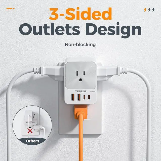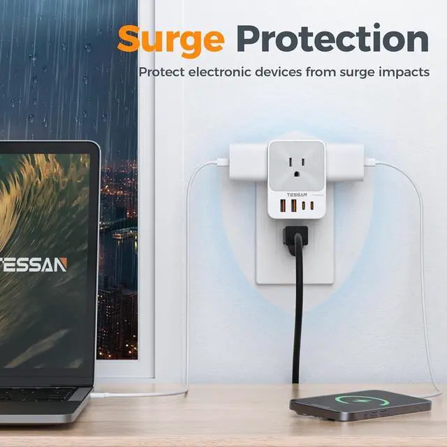 Surge Protector Outlet: The outlet splitter protects your devices, such as computers and other electrical appliances, from power surges and spikes; Plug extension outlet provides a secure and dependable charging environment