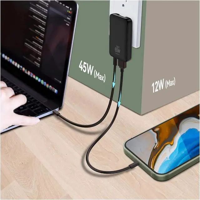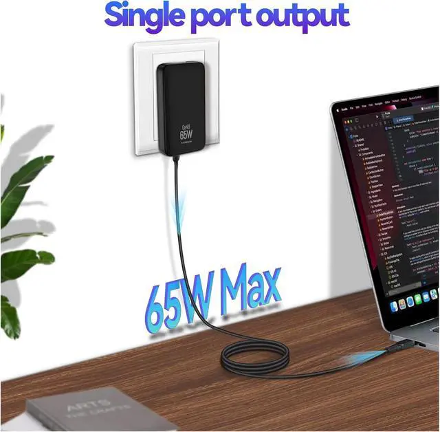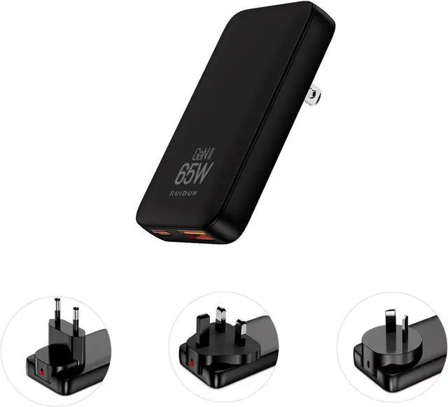 What You Get1 x 65W 2-port fast charging wall charger; 3 x UK/EU/AU plug converters. Excluding charging cable.