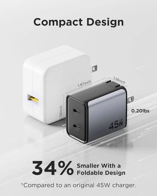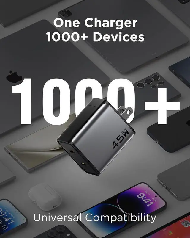 USB-C Fast Charging]: Featuring USB-C Power Delivery 3.0, dual USB-C ports with blind plug support up to 45W per port. The dual ports can simultaneously charge a smartphone, earbuds, and smartwatch at high speeds. Specifically designed for iPhone 16 series, it charges for iPhone 16 Pro to 56% and the Galaxy S24 to 61% in only 30 minutes. With PPS technology, the charger dynamically adjusts output voltage to ensure safe and efficient charging for iPhone, Galaxy, and other compatible devices.