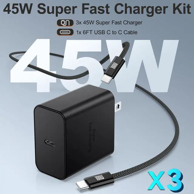 What You Get: 3 X 45W usb c fast charger, 3 X 6.6FT 100W usb c to usb c charging cable. The upgraded Type C fast charger kit is compact and lightweight, making it perfect for on-the-go use. If you have any questions, please contact us and we promise to solve your problems within 24 Hours.
