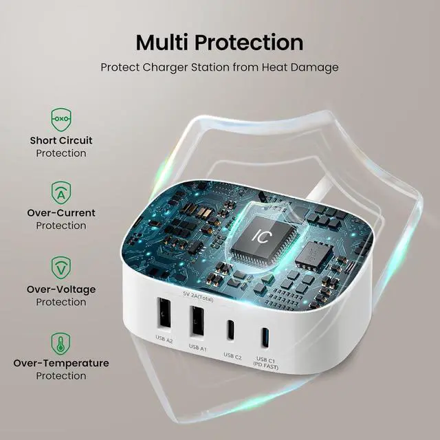 Smart Charging Protection: Built-in intelligent chip regulates each ports output to a maximum of 2A, helping to prevent overcurrent, protect your devices, and extend battery lifespansafe and reliable for everyday charging.