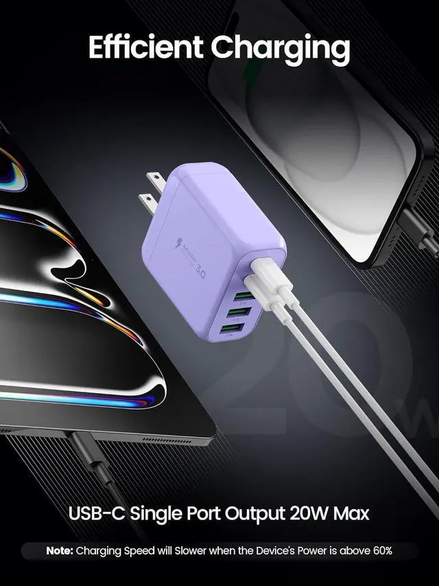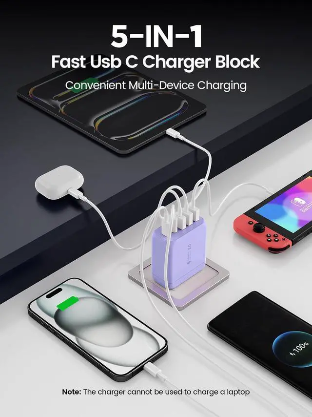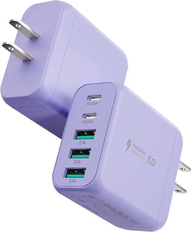 Multiport Usb C Charger: This charger brick features dual USB-C ports and three USB-A ports, letting you charge your phone, tablet, and headphones all at once, reducing wait time. It saves space by using just one wall outlet instead of five. It' s the perfect replacement for your original USB charger.