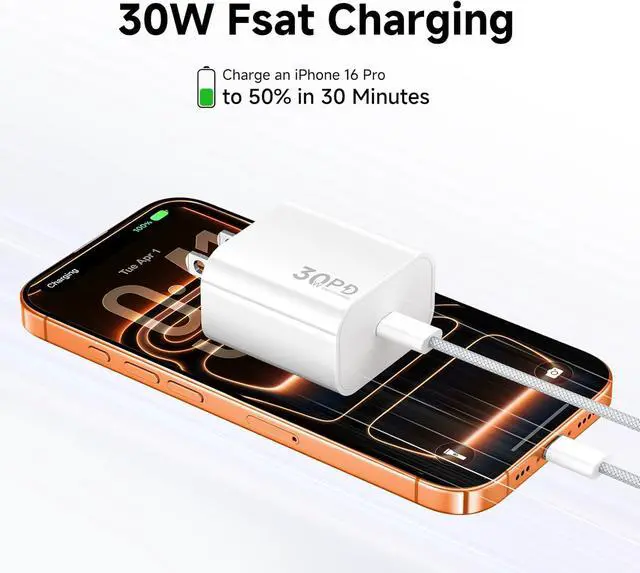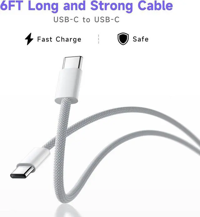 EXTRA-LONG 6FT DATA CABLE: 6FT USB-C to USB-C data cable, match our 30W charger, you can enjoy convenient and fast charging even when lying on your bed or sitting on the table