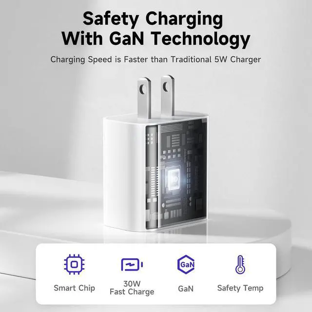 POWERFUL: With an output power of up to 30W, coupled with Gan technology, high-quality high-speed charger