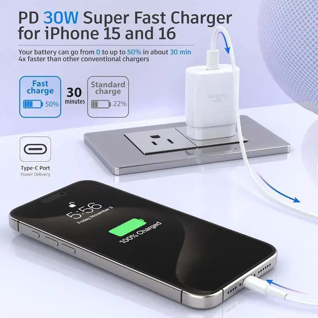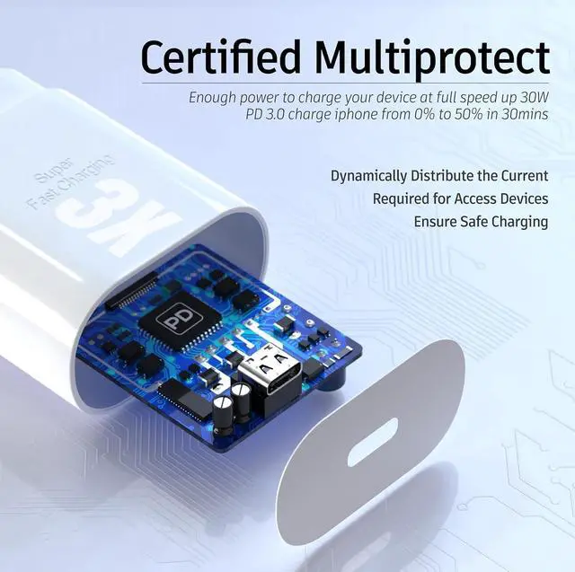 Power Delivery: Equipped with a USB Type C port, the PD 3.0 charger provides you Max 30W output power to fast charge your phone, tablet, Pad, and other devices. [