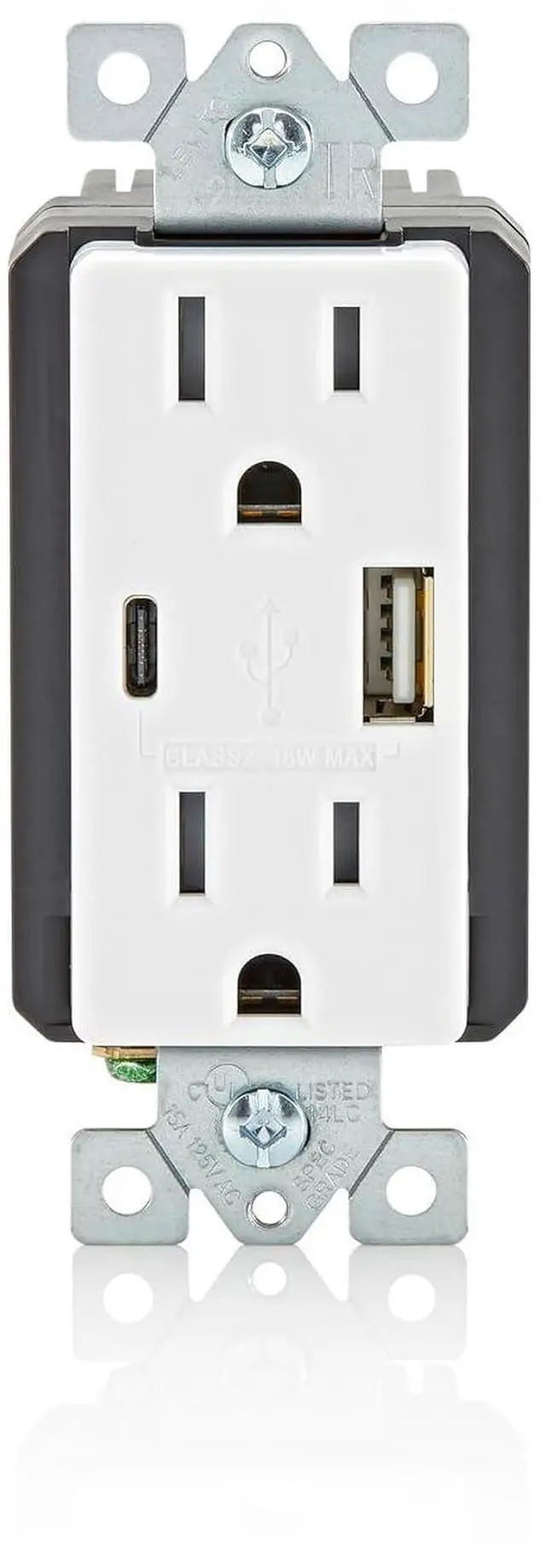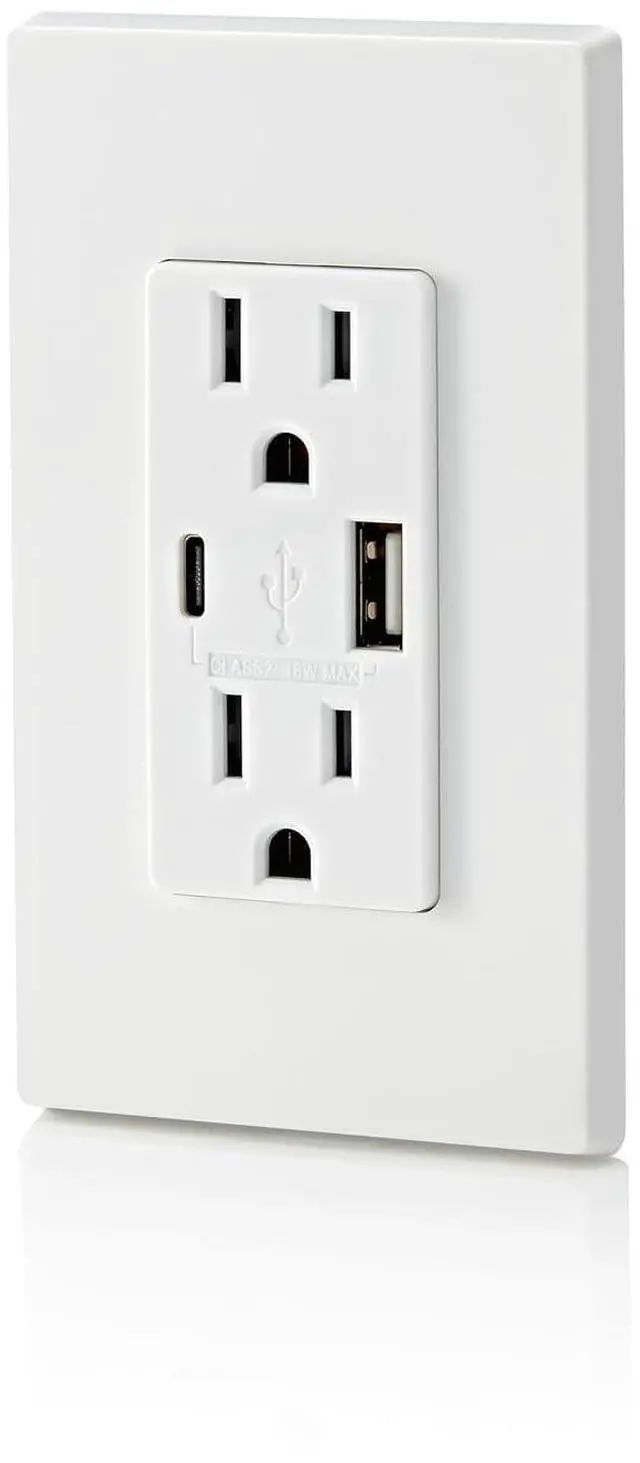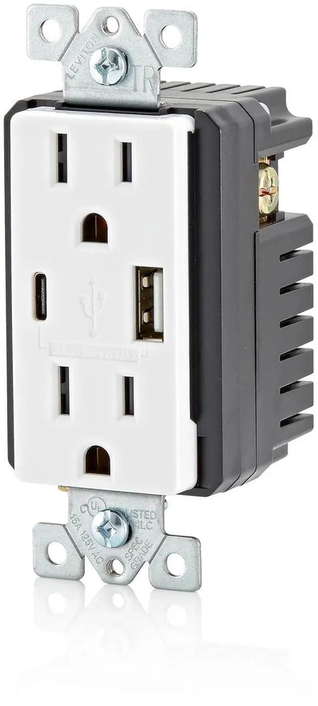 SMART Built-in smart chip recognizes the individual devices charging requirements to optimize the charge (Does not provide Power Delivery. See Leviton T5634, T5635, T5636)