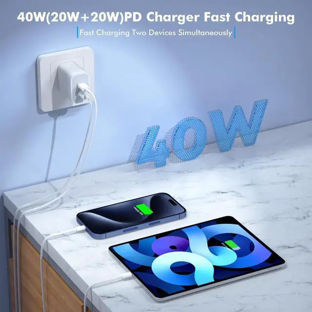 Dual Charging CapabilityThe 20W Dual Port for phone 15 Charger Fast Charging is equipped with cutting-edge fast charging technology that significantly reduces charging time. chargers features two USB-C ports, enabling you to charge two devices at once. Whether you need to power up for Phone 15 pro and a pair of earbuds or another compatible device, the dual ports offer convenient charging options. Equivalent to buying 2 charging devices.