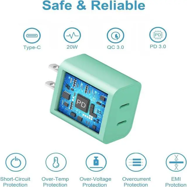 Safe Dual Port USB C For iPhone 15 Charger Block Phone charging adapter USB-C PD power has a built-in multiple protection system to avoid over voltage, overcharging, overheating, short circuit, etc. Phone charger can automatically match the current required by the device to charge your Phone/Pad device quickly, safely and stably.