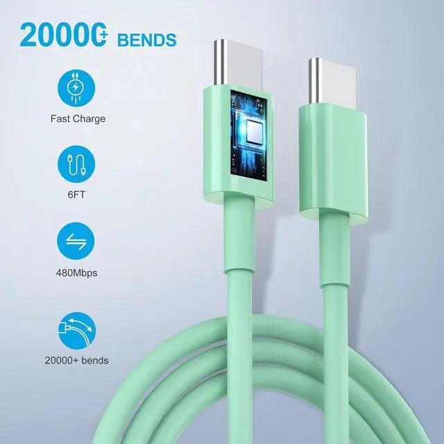 60W 6.6FT USB C Cable 4Pack 6.6 ft/2m long USB C to C cord, automatically detect For iPhone devices without pop-up warning messages. Ten feet Phone charger cable allows you to charge your iPhone/iPad from an extremely long distance, making your life easier and more convenient.