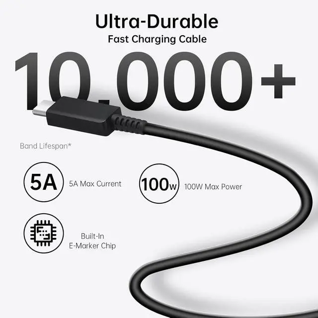 6FT USB-C to USB-C Super Fast Charging Cable CordThis USB Type C to Type C Super Fast Charging Cable features E-Mark Chip to realize Max 5A current, and it also functions as a high-speed data transfer cable that supports rates up to 480Mbps. 6FT length is convenient for usage while charging and syncing at home/office/travel in bed, hotel rooms, And More.