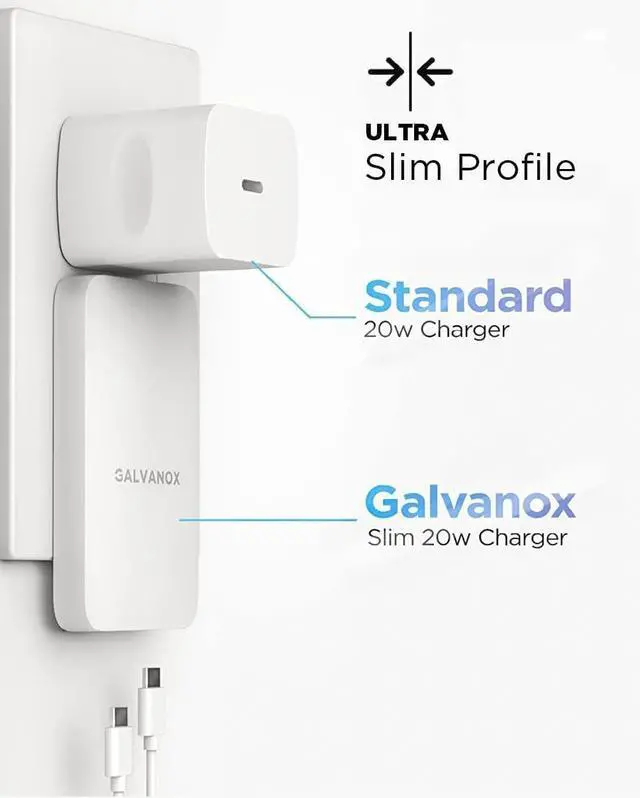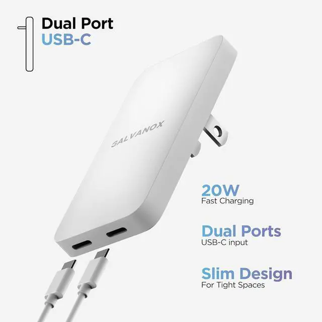 (3 Pack) Galvanox Dual USB-C Flat Wall Charger - Fast Charging Ultra Slim Outlet Plug, Multi Port Type C for iPhone 13, 14, iPhone 15 Pro Max and Samsung Galaxy Phones (20W)