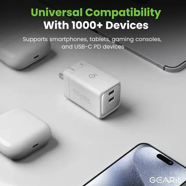 Compact & Travel-Friendly: Gearit' s USB type c charging block features a foldable plug and lightweight build, making it perfect for travel or everyday use. This charger easily fits in your bag, providing powerful charging without taking up space.