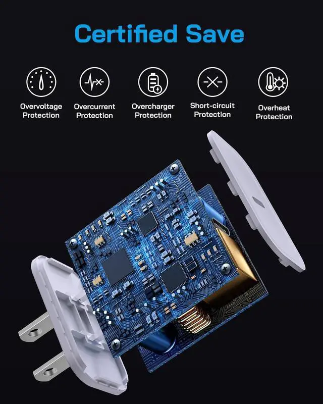 Built-in Safety Protection: Advanced safety chip prevents overheating, overcharging, and short circuits. Certified materials ensure stable power output for your device' s longevity.