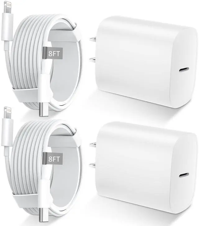 Hassle-Free Service2pack Phone charger block + 2pack Long Charger Lightning cable (8Ft)