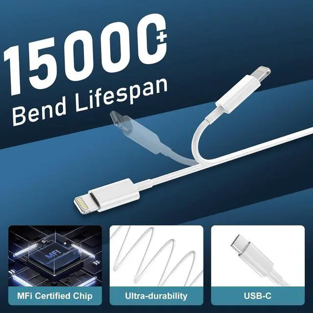 Lightning Cables2 set long Phone charger and extra long Phone charger cord are perfectly compatible with Phone 14/Phone 14 Pro/Phone 14 Pro Max/Phone 13/Phone 12 Pro Max/12 Pro/12/12 mini/11 Pro Max/11 Pro/11/SE (2nd generation) /XS Max/XS/XR/X (10) /8+/8/7+/7/6s+/6s/6+/6/SE (1st generation), With the Chip, the USB C to lightning cable equips automatic chip recognition function