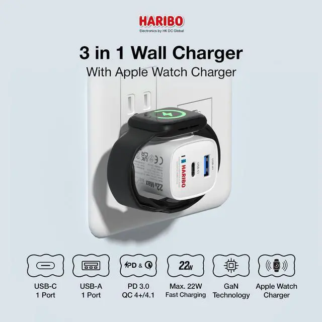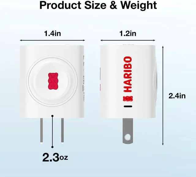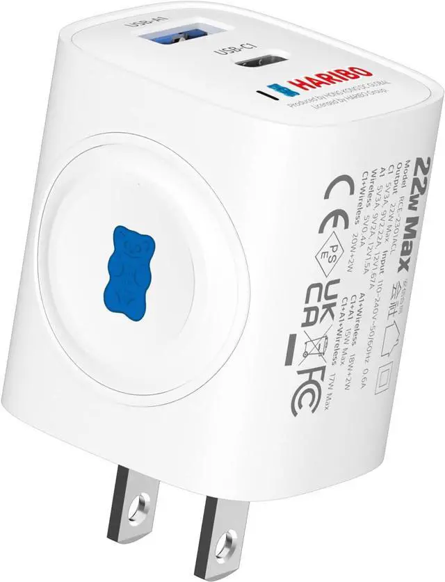 [Universal Compatibility & Haribo Design] Compatible with iPhone, Galaxy, Pixel, iPad, AirPods, Nintendo Switch and many USB-C/USB-A devices; Haribo Goldbear motif adds charm to your setup