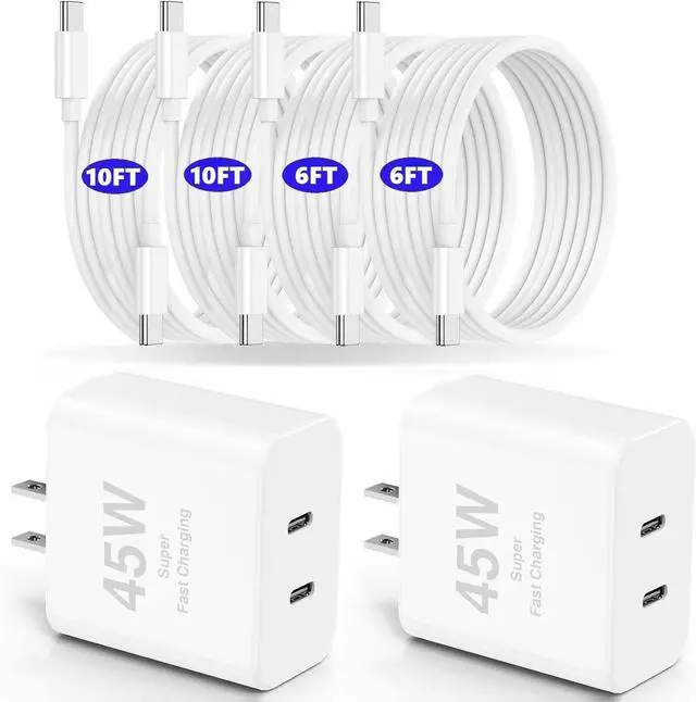 Dual Port 45w Charging BlockDual Port 45w wall charger plug, equipped with fast charging cables, with the use of to help you high-speed charging, improve efficiency. the USB C cord equips automatic chip recognition function. The ensures 100% flawless compatibility with Apple devices. No more trigger warning messages.