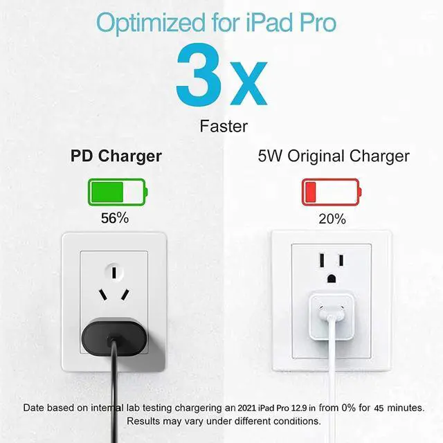 High-Speed Charging - Future-proof Power Delivery 3.0 fast charging technology, IPREMIUM ipad charger provides 20W power to fast charge at full speed for ipad, full charger iPad Pro 12.9 in 2.5 hours.