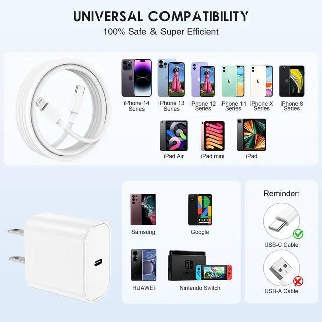 Widely CompatibilityPerfectly works excellently for iPhone 14/14 Pro/14 Pro Max/14 Plus/13/13 Pro/13 Pro Max/13 Mini/iPhone 12/12 Mini/12 Pro/12 Pro Max/SE 2020/11/11 Pro/11 Pro Max/XS/XS Max/XR/X/8/8 Plus, iPad and more.