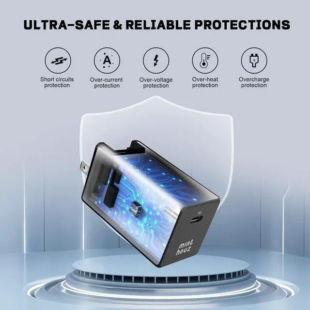 Ultra-Safe: Minthouz 65W USB C charger have Short-circuits/Over-current/Over-voltage/Over-heat/Overcharge Protection. Enjoy fast charging with quality assurance.
