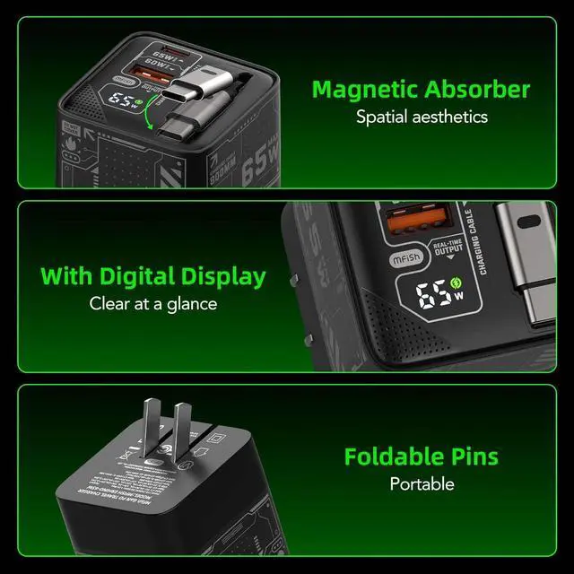 65W GaN Fast Charging Technology Powered by next-gen GaN tech, this charger delivers faster, cooler, and more efficient charging in a compact, travel-ready design.