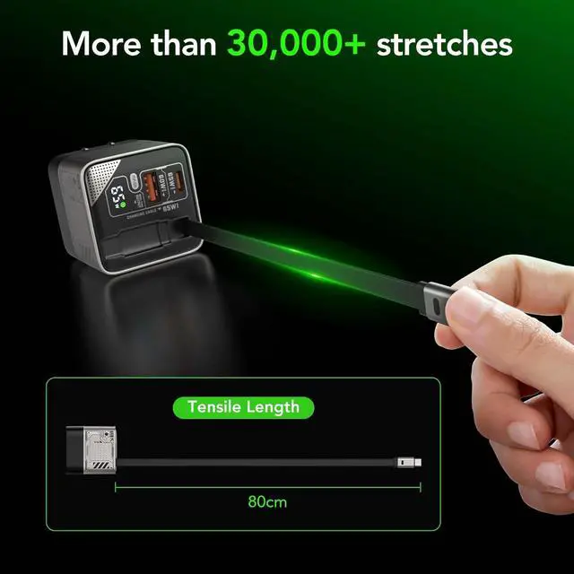 Built-In 2.6 ft Retractable USB-C Cable Features a durable, retractable USB-C cable for quick access and easy storageno more tangled cords or clutter.