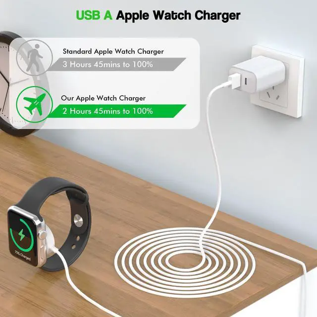 2 in 1 USB C & USB A Watch Charger: The 2 in 1 USB C & USB watch charger plug adopts advanced PD 3.0 technology - deliver a rapid charger. Our watch charger fully charges your watch 10 in just 2-3 hours saving time compared to standard watch charger. The 2-in-1 adapter design can charge two devices simultaneouslyCompatible with