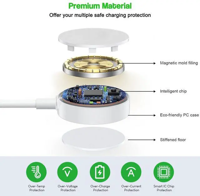 Security Protections: The iPhone and watch charger fast charging is made of high quality ABS+PC and pure copper wire and has undergone over 10000 bending tests to ensure its flexibility and durability. Built in multiple protections such as over-temperature protection over-voltage protection over-current protection and short circuit protection to ensure the safety of device chargingWhat