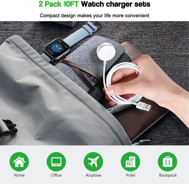 Magnetic Attraction: This 10 feet USB A iPhone watch charger magnetic charging Pad has a built-in magnetic charging module with powerful magnetic connection function which can quickly recognize your Watch and firmly attach it. 10FT ultra long design can meet daily life needs and the compact design perfects for travel office or bedside useMultiple