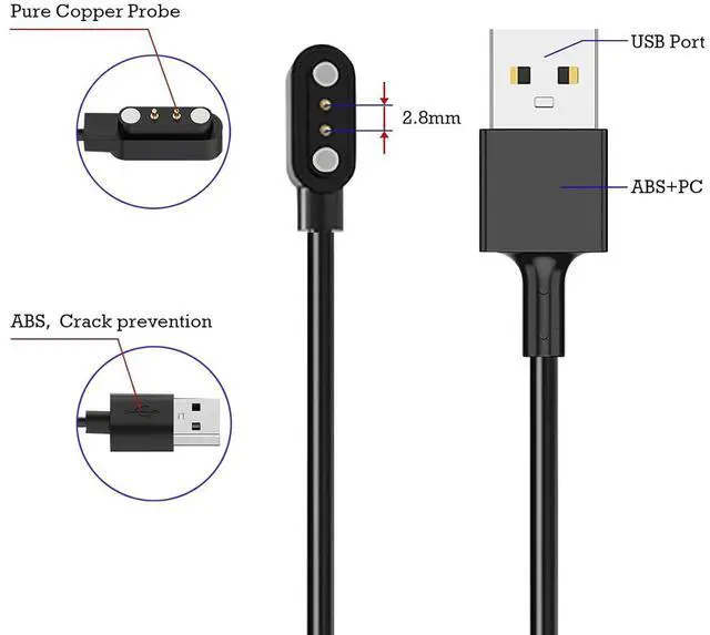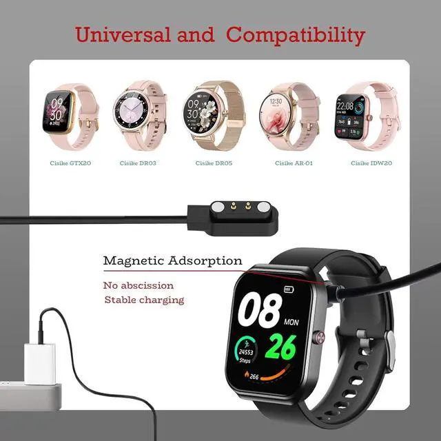 Wide Compatibility: Cisike smart watch charger magnetic is perfectly compatible with smartwatch models including IDW28 IDW25 IDW19 TGW01 GTX20 DR03 DR06 and DR05 delivering a hassle-free magnetic charging experience with one-step alignment. Multi-brand compatible smart watch charger magnetic works seamlessly with most smartwatches that support magnetic charging eliminating the need to buy multiple chargers for different devices. Built with durable ABS & PVC materials the Cisike smart watch charger magnetic 2 pin boasts a 40cm flexible cable that resists over 5000 bends ideal for daily use home office and travel scenarios. This 2-pack watch charger features a high-purity copper core for fast and stable charging fully juicing up your compatible smartwatch in around 2 hours while maintaining consistent power output. The watch charger has a wide range of compatibility. You can use the USB port of a PC laptop or adapter to quickly and safely charge your smart watch.