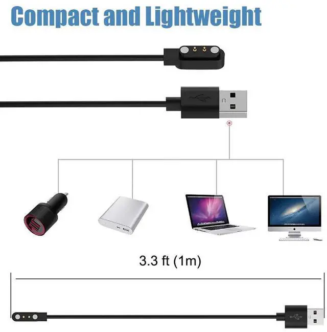 USB Charger for VeryFit Smartwatch Magnetic Charging Cable for VeryFit IDW26 / 25 / 23 / 21 / 19 / 17 / 16 / 15 / 13 SKG V7/V7 Pro/R8 TOZO S2 S3 S4 S5 S6 S7 Umidigi Uwatch 3S 3 2S 2 / Urun / Uruns / Ufit Magnetic Charging Method - Gold-plated magnetic 2 pins contact ensures stable current transmission to charge your SKG V7 / V7 Pro / R8 smartwatch. High Quality and Safety - Over voltage protection over current protection. safe to protect your TOZO S2 S3 S4 S5 S6 S7 smart watch.