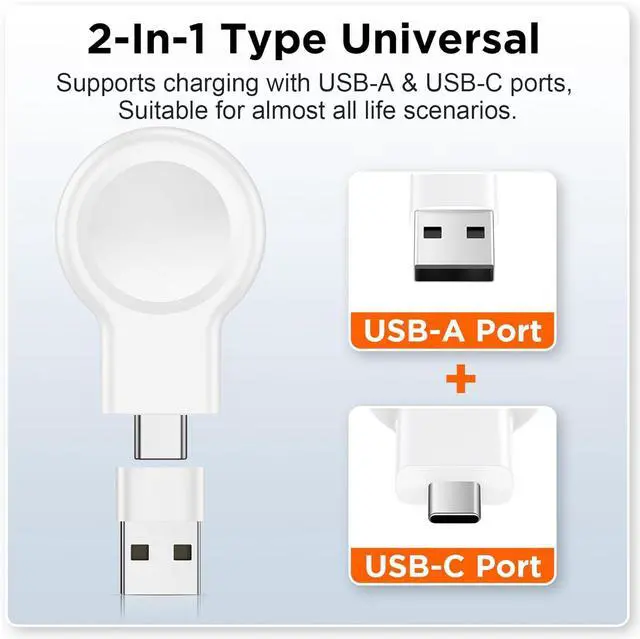 2-in-1 Charging Kit & Risk-Free PurchaseGet a USB-C watch charger + a standalone USB-A adapter for the price of one double value in a single purchase! Includes 12-month warranty. If you're not satisfied we are readily available to assist you via the Message CenterWidely CompatibilityThis upgraded charger designed for