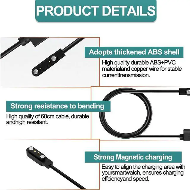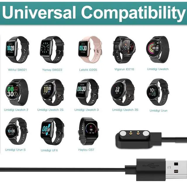 Wide Device Compatibility Replacement charger for smartwatches and fitness trackers with 2.84 mm 2-pin magnetic interface. Supports models ID205L ID205S ID205U SW021 SW023 SW025 ID206 ID216 Uwatch 3S Urun Urun S GT01 CT4 V7 BV-SW01 and more. Precision 2.84 mm Pin Spacing Universal smart watch charger Designed specifically for watches using 2.84 mm center-to-center distance between charging contacts. Accurate fit ensures stable connection and safe charging. Measure your watch contacts before ordering for compatibility. Strong Magnetic Connection Smartwatch charger magnetic Built-in strong magnets and pure copper probes auto-align with watch charging points reducing accidental disconnections.