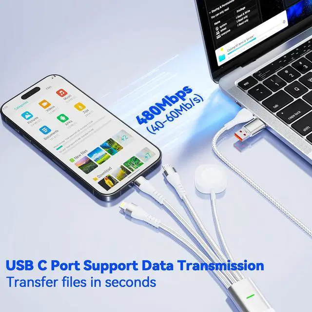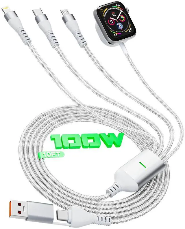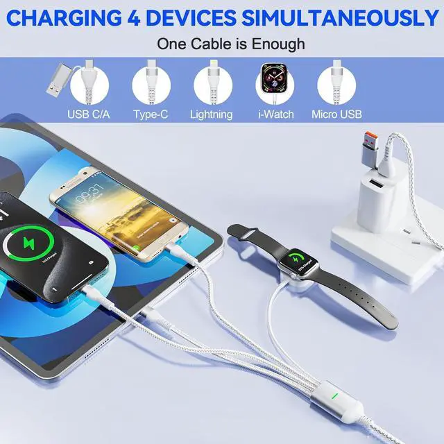 Cable Watch: This 100W 6A Multi Charger Cord Including Type C/Lightning/Micro USB/iWatch Charger with USB C/USB A input easily charge four devices simultaneously making it an ideal backup charging cable for travel.
