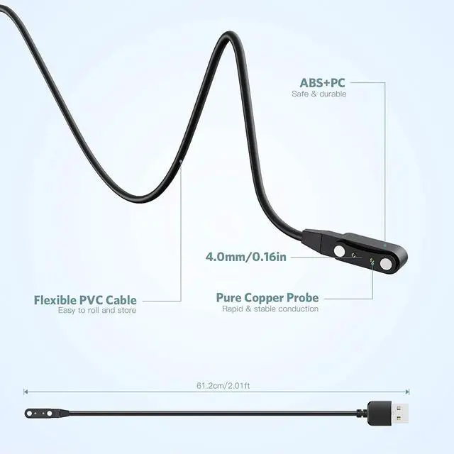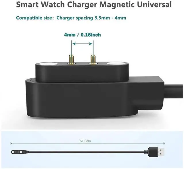 Wide CompatibilityEngineered for broad compatibility this magnetic charger works with a wide range of Smart wearables including Smartwatches Fitness Trackers Bone Conduction Headphones and Smart Glasses. The key specification is a 4mm (± 0.2 mm) center-to-center distance between the charging contacts. Please verify this measurement on your device before purchasing to ensure a perfect fit. Magnetic Connection & Fast ChargingFeatures a powerful upgraded pure copper magnetic probe for a instant and secure attachment. The strong auto-alignment ensures a stable connection that won't easily detach protecting your device from potential damage. This design coupled with rapid conduction technology enables a full charge in approximately 2 hours.