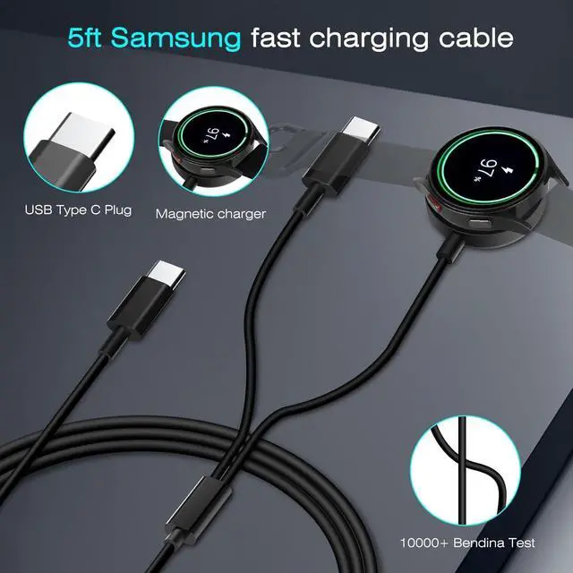 Type c to c cable made of durable ABS PC material and pure copper wire has undergone 20000 bending tests to ensure its service life. This Galaxy Watch fast charger can fully charge the phone within 1.5 -2 hours and the watch within 2.5 hours. Greatly reducing waiting time whether at home in the office or on business trips it can easily save you time and is the preferred alternative to charging