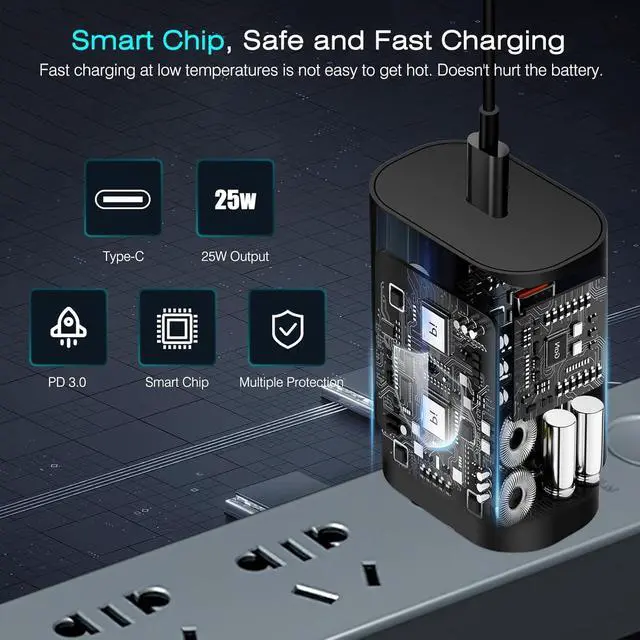 The Newly Upgraded Galaxy Watch Charger offers you an all-in-one charging experience supporting simultaneous charging for both Galaxy watches and phones. It is compatible with Galaxy phones tablets and earbuds. The upgraded USB-C cable fits various adapters and Power Supply making it convenient to carry and perfect for daily charging needs (Please note Not compatible with Gear S2/S3/S4). The Galaxy Watch charger adopts intelligent fast charging and data transfer technology magnetic adsorption design and automatic focusing. The 25W USB-C wall adapter has multiple built-in security protections supports super fast charging and prevents overheating overvoltage and overcurrent This upgraded smartwatch charger can also be widely used for power adapters power banks charging stations computers car chargers and other power sources.