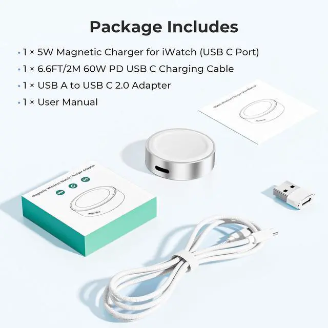 )Strong Magnetic Charging Dock: The built-in magnet automatically aligns your Watch to the charging area for a secure and effortless connection. Simply place your watch on the dock and it snaps into place instantly no need for precise positioning or cable adjustments. Stable reliable and easy every time you charge. 60W PD Cable and