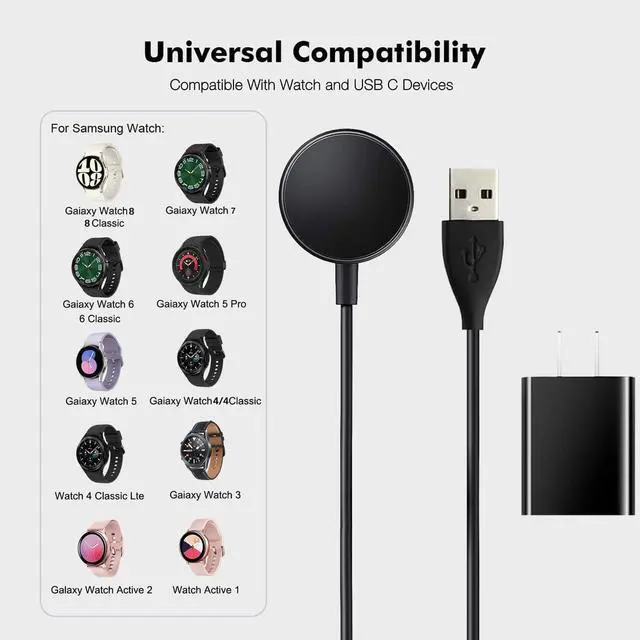 Watch ChargerFit for: Galaxy Watch 8 8 Classic Watch 7 Watch 6 Classic 6 Watch 5 Watch 5 Pro Watch 4. Watch 4 Classic Watch 4 Classic LTE Watch 3 Active 2