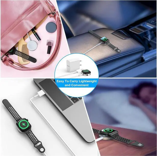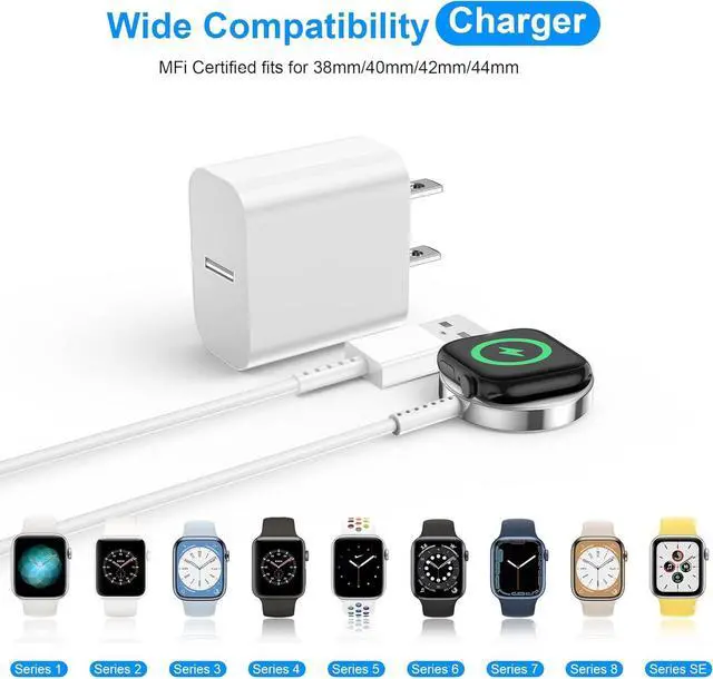(Tips: We advise to charger without i-watch case. It does not charge through metal or cases thicker than 4mm. )Compatible with All Watch SeriesThe 3 Feet iWatch Charger Supports Fast Charging for all watch Series Ultra/8/7/6/SE/SE2/5/4/3/2/1 (including all 38mm 40mm 41mm 42mm 44mm 45mm 49mm). Strong magnetic adsorption The angle of the 3ft magnetic watch charger can be adjusted freely and it will not deviate from the center of the charger. It is portable portable travel home and office and can charge your Watch conveniently. Multiple Safety ProtectionFor iWatch charger cable is made of high quality ABS+PC and pure copper wire has been tested for 10000+ times. Built-in safety functions such as overcurrent over voltage short circuit and overtemperature protection to provide you with a safe charging environment and a good charging experience.