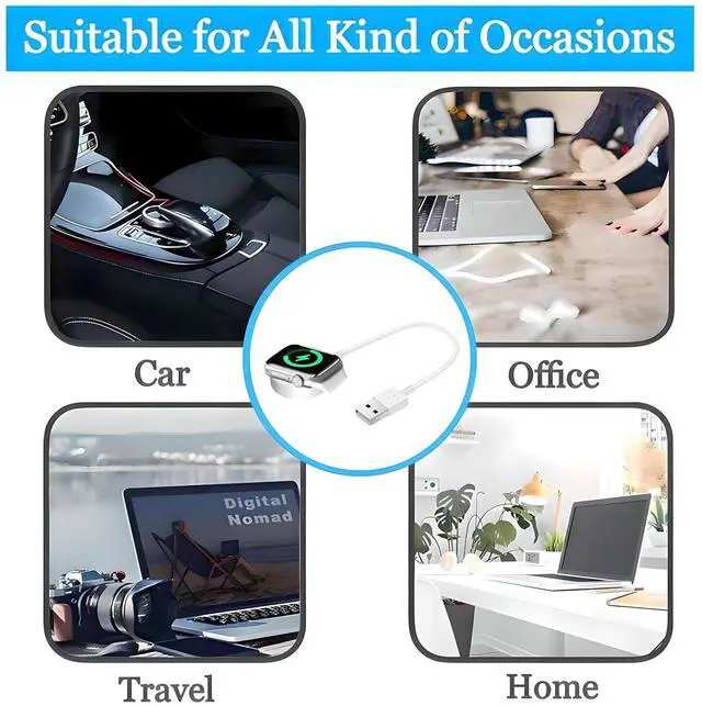 Ideal as a travel Watch charger car charger or portable backup cable????????????????????????????????????????????????????????????? Strong magnetic attraction ensures proper coil alignment for efficient wireless charging. Shock-resistant and heat-tolerant materials help maintain stable charging even during movement??????????? -???????????????????????????????????? Integrated protection against over-current over-voltage short-circuit and over-temperature helps safeguard your Watch battery during everyday charging??????????????????????????????????????????????????????????? Reinforced cable structure tested for 8000+ bends and insertions ensures long-lasting performance for home office travel or car use?????????????????????????????????? 1× Short Watch magnetic charging cable backed by a 24-month warranty and responsive 24/7 customer support